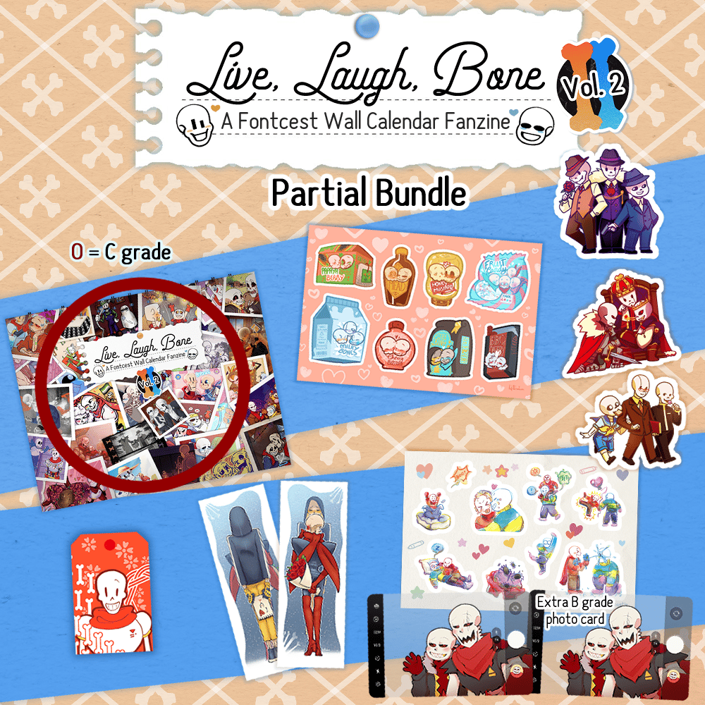 Live, Laugh, Bone: Volume 2 is a 2026 Papysans / Sanspapy wall calendar created by 20 artists. It includes 48+ illustrations of Papysans / Sanspapy (AU-friendly).